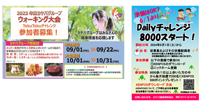 ・年間を通じて、「1日平均8000歩以上歩こう」という目標を掲げて、毎月ウォーキングのイベント「Dailyチャレンジ8000」を実施しています。
