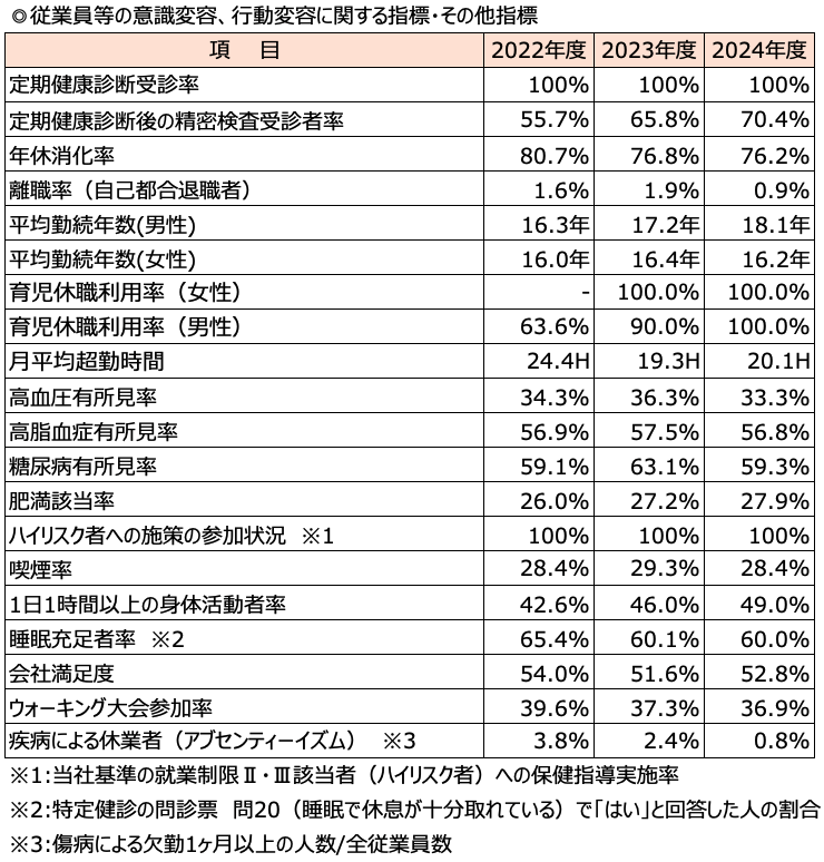 健康経営等に関わる指標